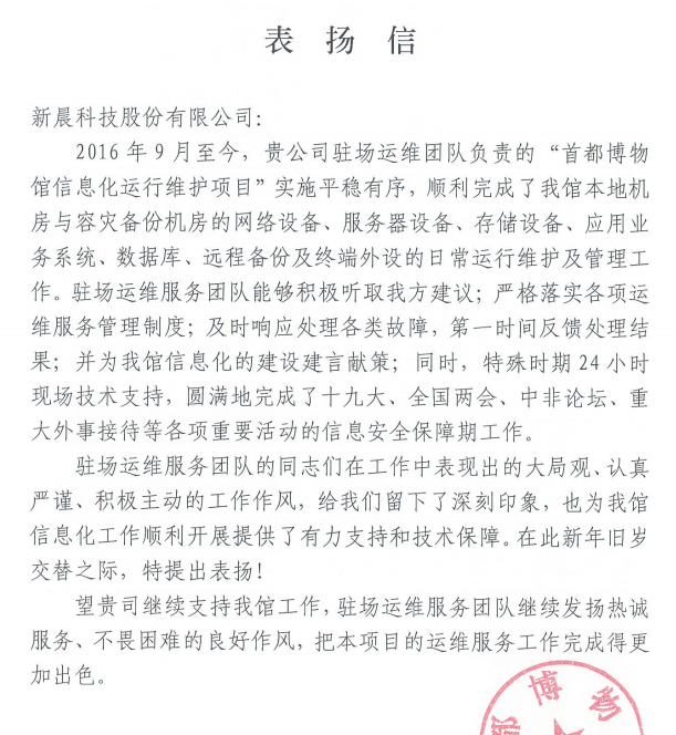 首都博物馆表扬信